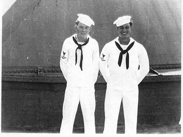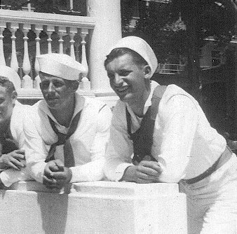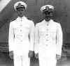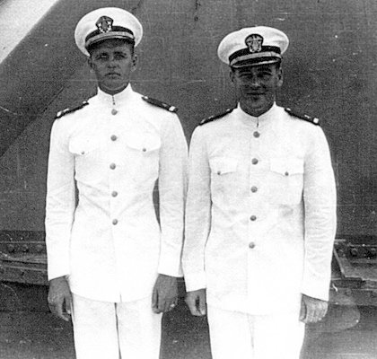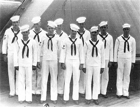 William (Bill) Mitchell, 1st division 41-43.  Bill & Albert were school mates & joined the Navy together in Melrose, NM, Nov. 1941 C.B. Cates, 2nd Division Officer C. B. Cates & ??? 2nd Division officers, 42-45