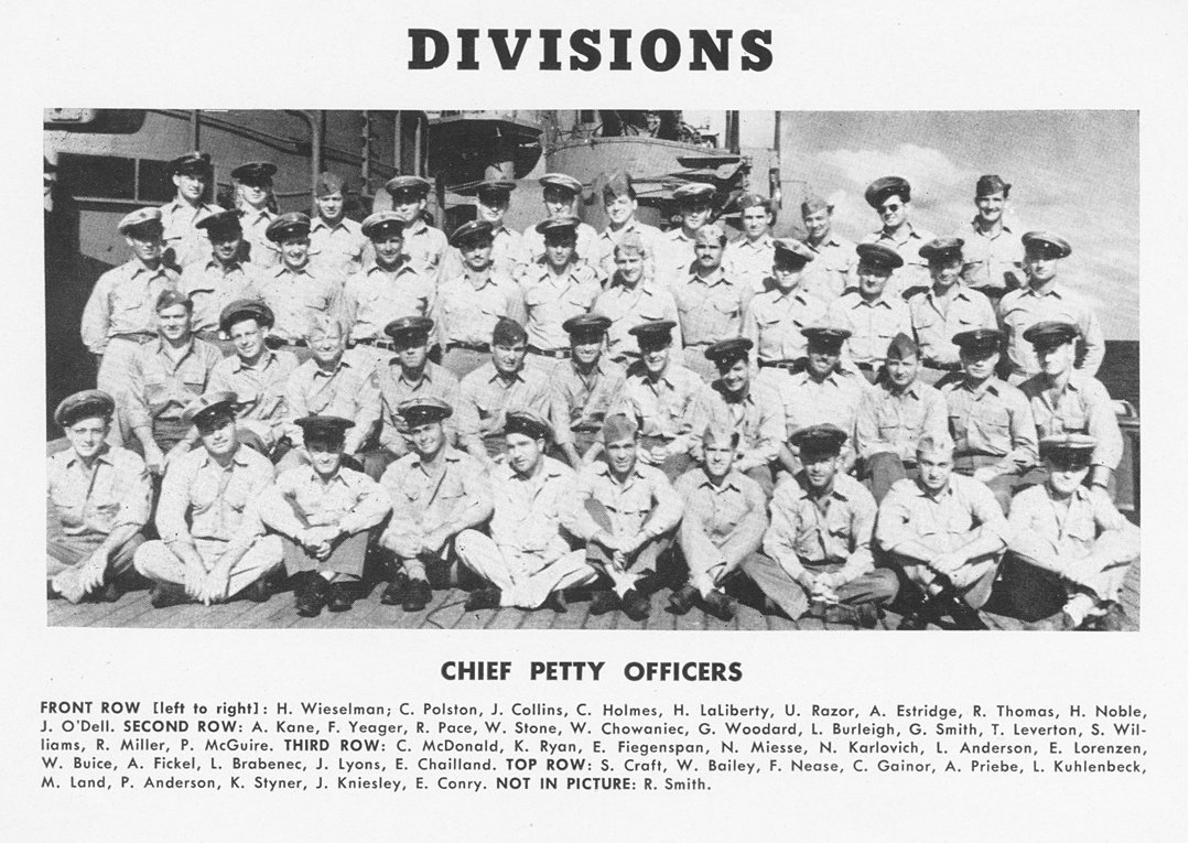 | Communications Department Officers | Medical Department Officers | Chief Petty Officers | 1st Division |